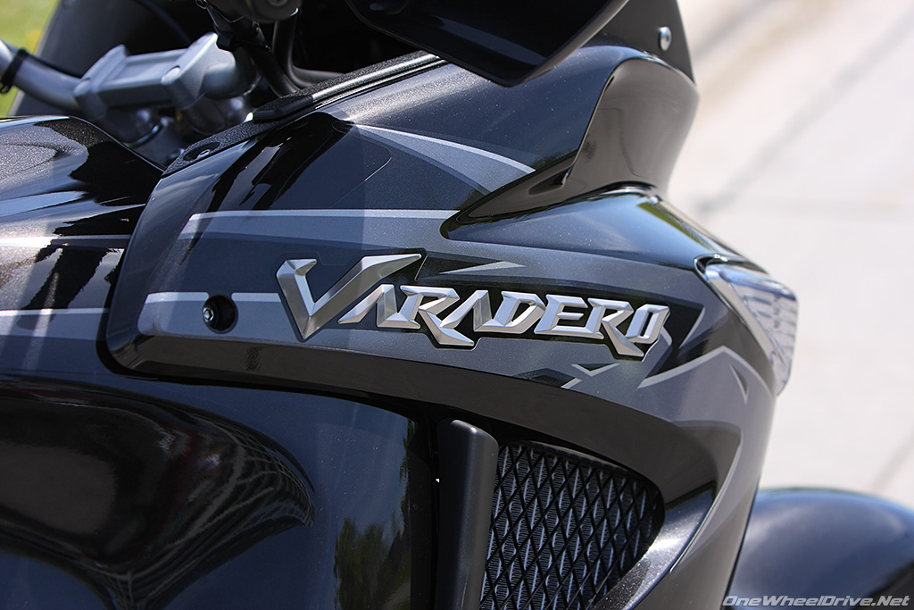 The first top-heavy flop into a series of turns in Niagara’s wine country reveals the Varadero’s distinctly old school feel. Despite the stability provided by the long 1,560 mm (61.4 inches) wheelbase, tipping into the turns is light and easy largely thanks to the wide bars and the narrow 150/70R–17 rear tire.