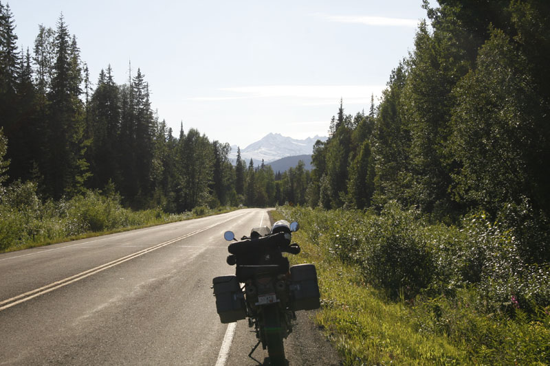 At Kismet, the junction of highways 16 and 37, I have a moment of doubt and nearly turn back. There’s no strong game plan here, just an urge to press northwards. The sign here in Kismet reads “North to Alaska” conveying the enormity of North’s possible meaning. Originally the title was tied to riding Northern British Columbia, but now the Yukon is within striking distance. So why stop?