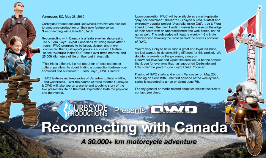 Curbsyde Productions and OneWheelDrive.Net are pleased to announce production on their new feature series “Reconnecting with Canada” (RWC)